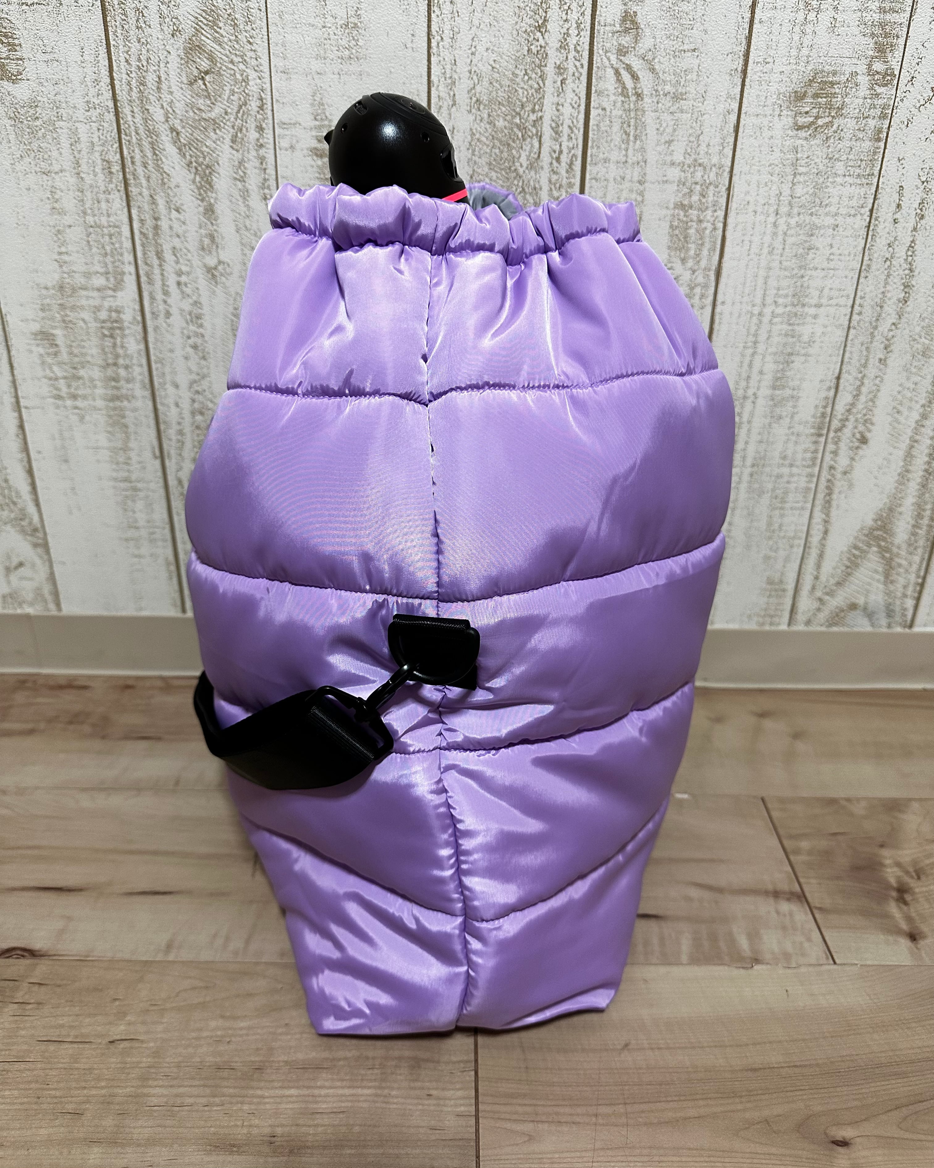 ◉ 旧商品と比較して、縦横+5cmサイズアップ、中綿100g増量、ショルダーベルトのナスカン(金具)をプラスチックからステンレスに変更しショルダーパッドも付属しています。