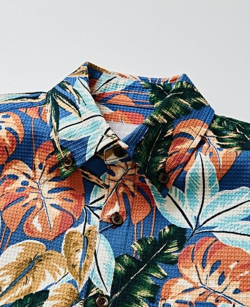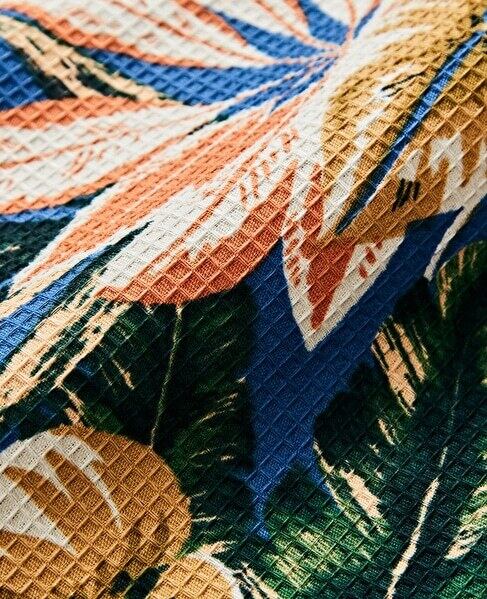 ・ワッフル組織の素材は、プリント柄に陰影を出す効果と、肌への接触部分が少ないため清涼感を感じ取れる素材です。