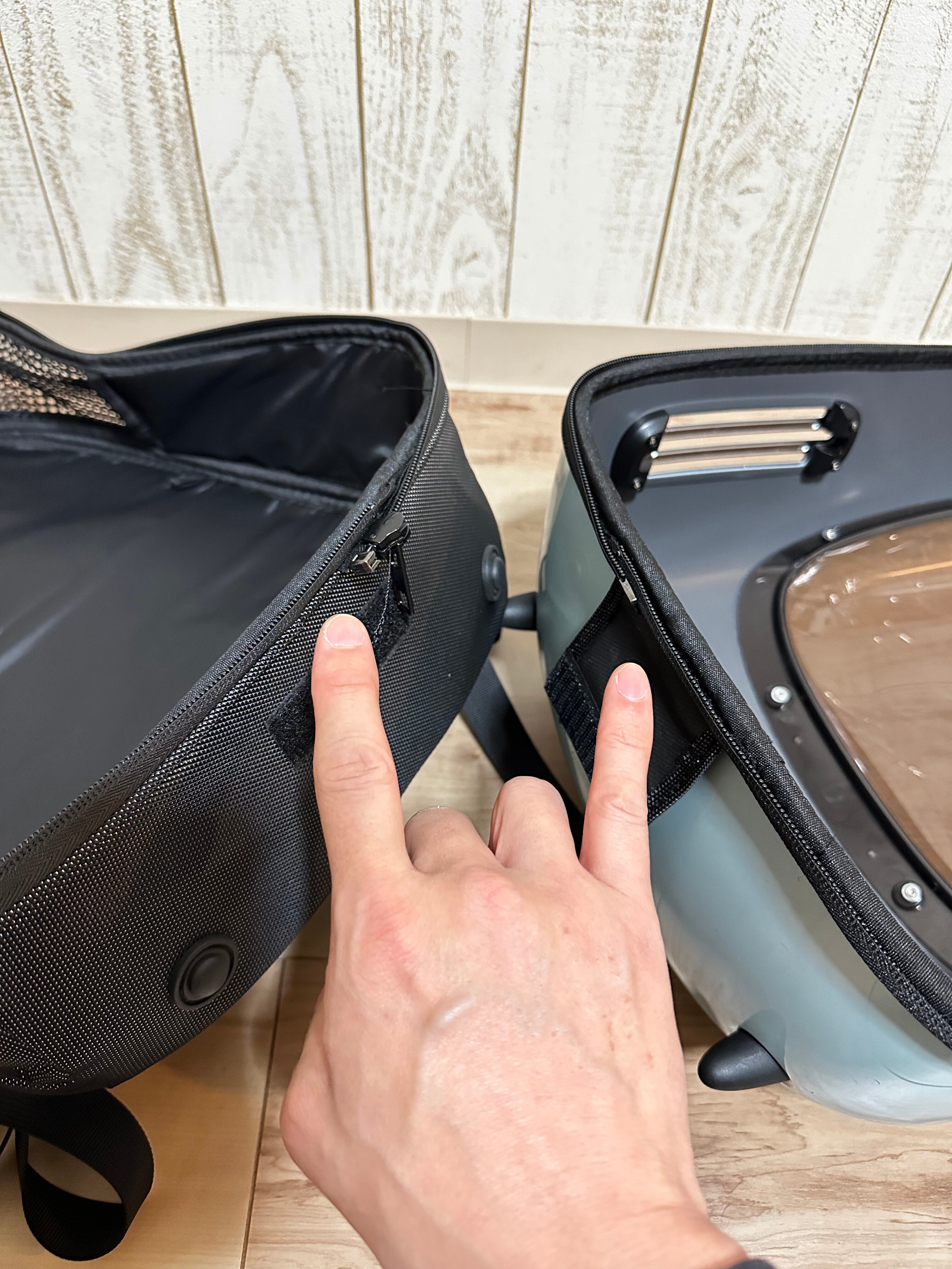 ◉ 分離式の構造で、チャックで繋ぎ合わせると完成します。